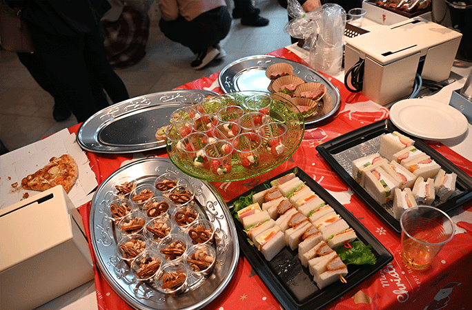 セミナーの後には、食事をしながらの懇親会が開かれました。参加者同士がリラックスした雰囲気の中で会話を楽しみ、日頃の学習や仕事に関する情報交換を行う貴重な時間となりました。料理はクリスマスをテーマにした特別なメニューが用意され、参加者たちは美味しい料理を楽しみながら、自然と会話も弾みました。