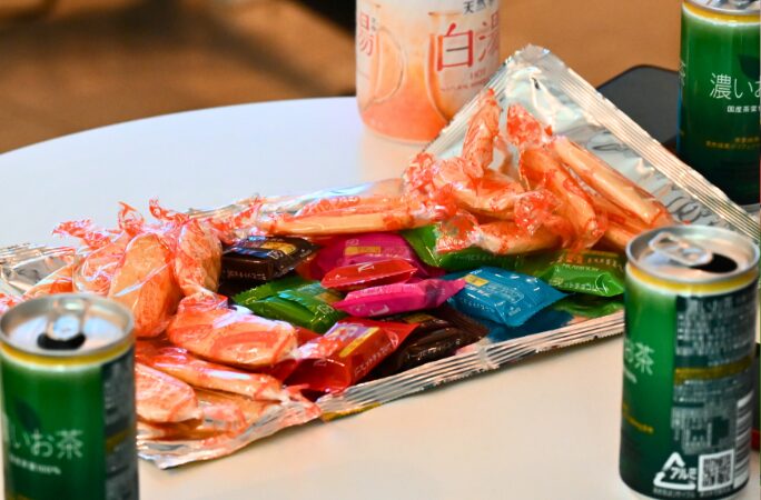 スタッフの気まぐれな差し入れでお菓子を食べながら楽しく歓談も。