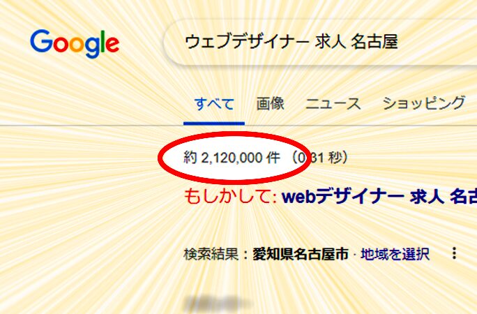 試しに、「Webデザイナー 求人 名古屋」とグーグルで検索してみましょうか。