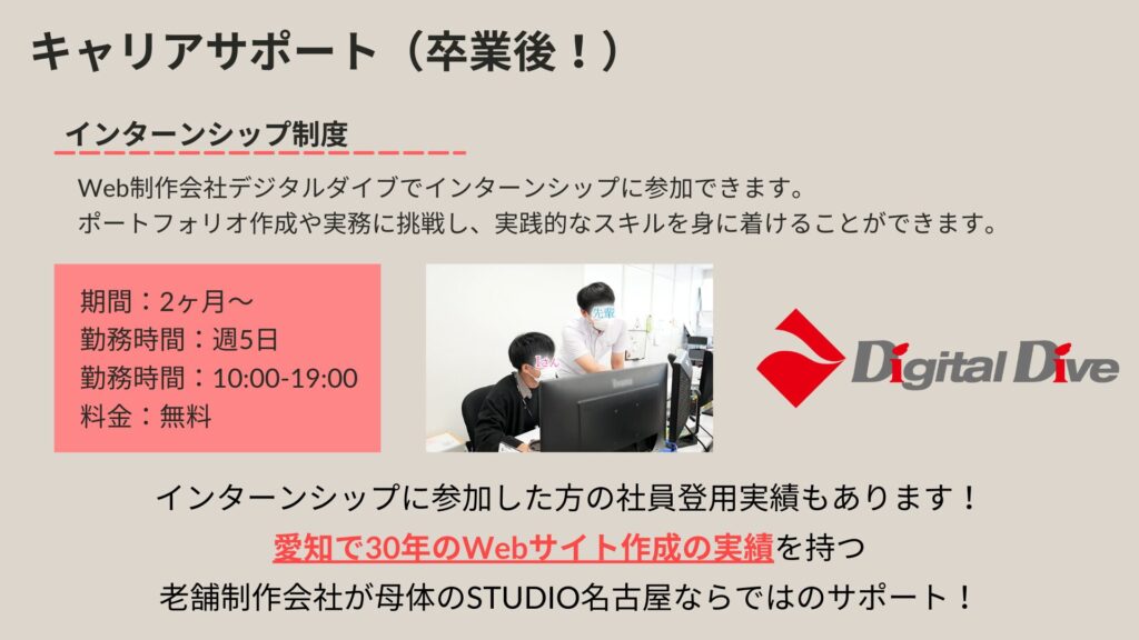さらに、名古屋のWeb制作会社でインターンシップが可能です!