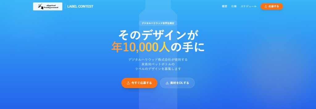 このコンテストは、デジタルハリウッドを訪れるゲストにお渡しする「オリジナルミネラルウォーター」のラベルデザインを決定するもの。