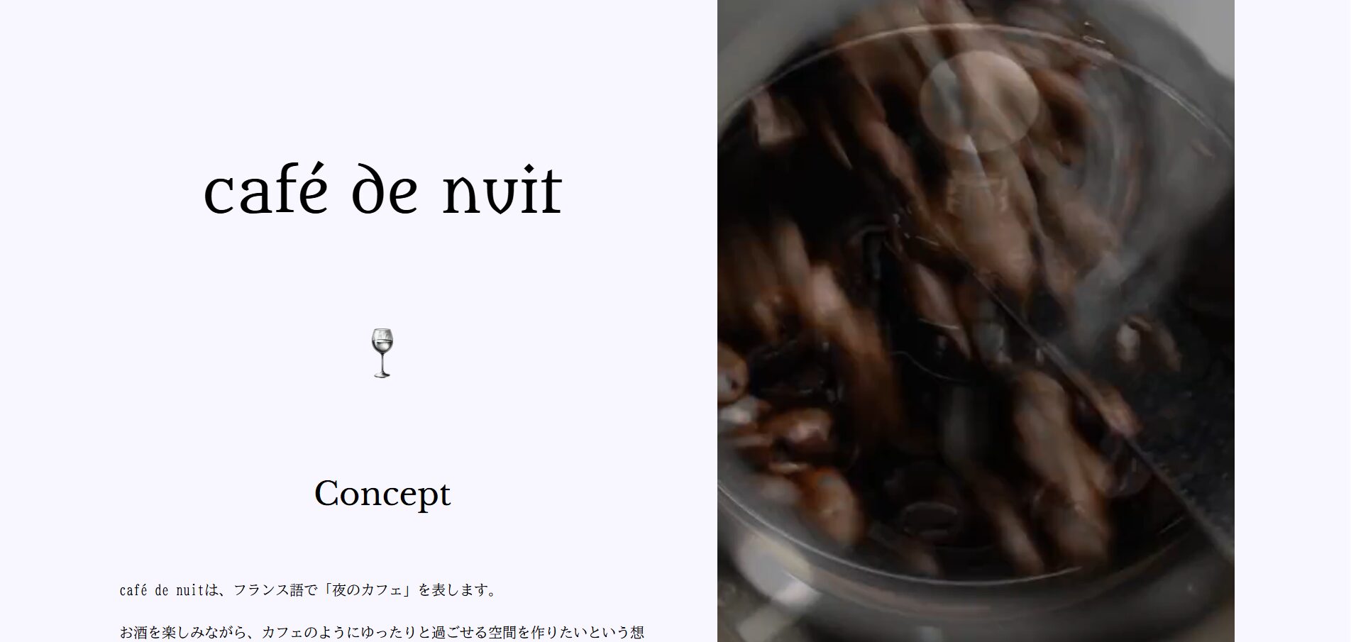 レイアウトや色のバランスをじっくり考えながら制作した架空のカフェサイトです。