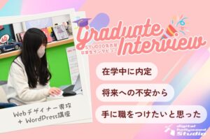 在学中に内定をもらった、デジハリ名古屋の卒業生。未経験からWebデザインを学び、転職を目指したリアルな学習体験や卒業制作、1日のスケジュール、スクール選びのポイントを詳しく紹介します。